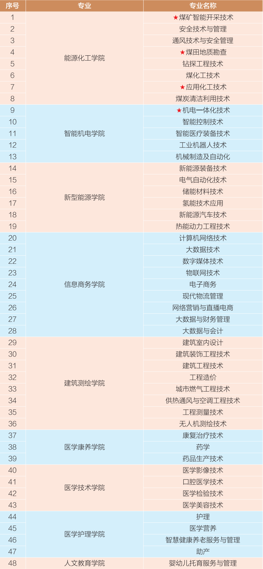 3.加*专业为国家双高专业;