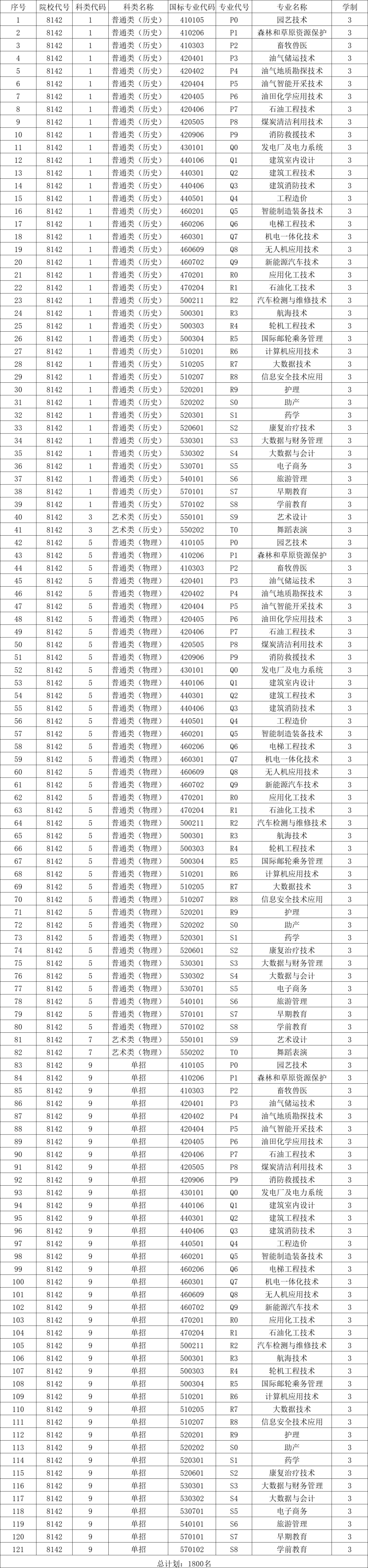定向培养军士专业:海军3个:航海技术、轮机工程、信息安全技术应用;空军2个:汽车制造与试验技术、机电一体化技术;武警1个:无人机应用技术