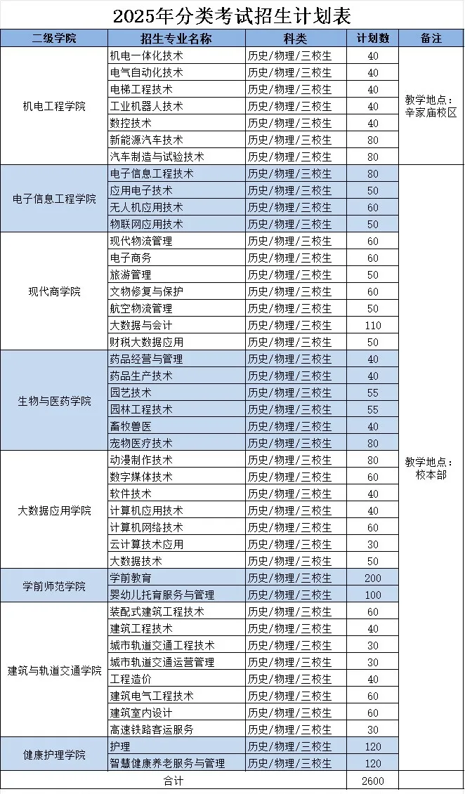 2025年西安职业技术学院分类考试招生计划2600人,申请人数62875。